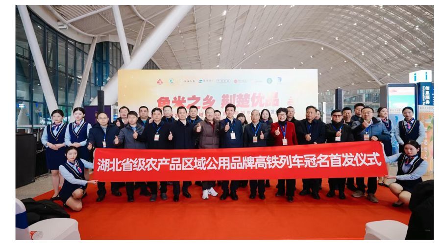 1月28日,湖北省级农产品区域公用品牌高铁列车冠名首发仪式在武汉火车站成功举行。来自湖北省农业农村厅、中国铁路武汉局集团有限公司,及相关品牌牵头市县农业农村部门负责人、企业代表等40余人出席现场活动,共同见证这场“荆楚优品与高铁速度”的美好邂逅。