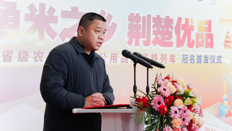首发仪式上,武汉武铁旅服传媒有限责任公司副总经理胡书君在发言中表示,交通强国,铁路先行,此次首发的湖北省级农业品牌高铁专列,既是交通动脉与农业品牌的双向奔赴,更是“高铁速度”赋能“农业发展”的创新实践。专列开通后,将充分发挥高铁网络覆盖面广、客流量大、传播力强的优势,让湖北九大省级农产品品牌,随着飞驰的高铁走进千家万户,让“荆楚优品”的闪亮名片在旅途之中深入人心。