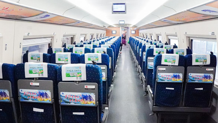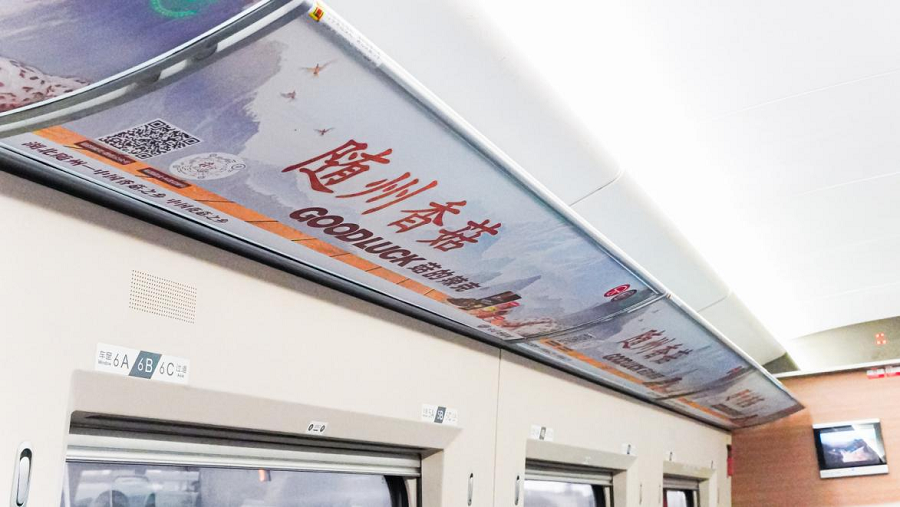 专列车厢内部,门贴、小桌板、行李架及LED屏等地,处处彰显“荆楚优品”的醒目元素,将湖北九大省级农产品区域公用品牌形象与湖北地域特点、人文风貌充分融合。乘车旅客只需拿出手机扫描随处可见的专属二维码,即可一键跳转至相关电商平台一键下单,完成从品牌认知到产品体验的无缝衔接。