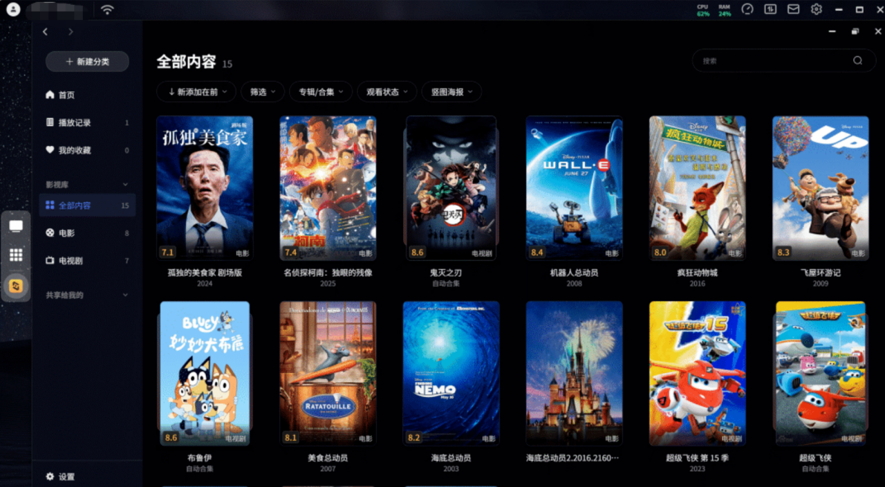 极影视支持自动抓取影视信息并生成美观的海报墙界面,不管是经典动画、亲子向剧集还是院线热门影片,都能快速规整分类,打造出视觉效果出色的影音展示页面,让海量影视资源告别杂乱状态,查找与点播更加轻松高效。针对亲子家庭的核心诉求,极影视支持创建独立的少儿影音专区,家长可将筛选完毕的优质动画、教育类影片统一收纳其中,并通过账号权限管控,让孩子仅能访问专属少儿内容,从源头隔绝不良影音信息,让孩子的观影环境更安全、更安心。
