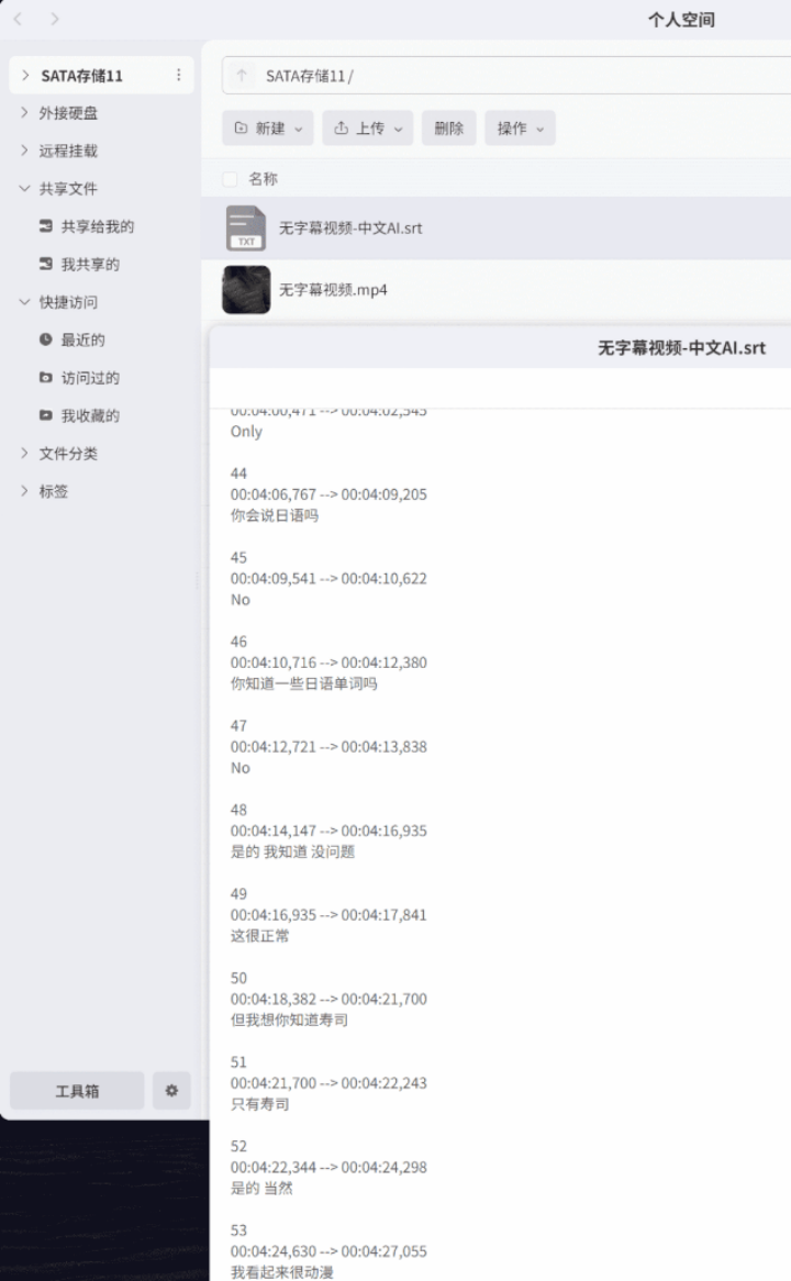 针对下载的无字幕新片、稀缺外语片源,Z4Pro+的AI智能处理能力可自动生成标准SRT格式中文字幕,不用手动搜索、匹配字幕文件,短暂等待即可获取精准字幕内容,让小众片源、无字幕影片的观看变得简单便捷。生成的AI字幕不仅可直接在极影视中加载使用,还支持手动校对与修改,满足影音发烧友的个性化需求,甚至能为字幕制作提供高效助力,大幅提升字幕制作工作效率。