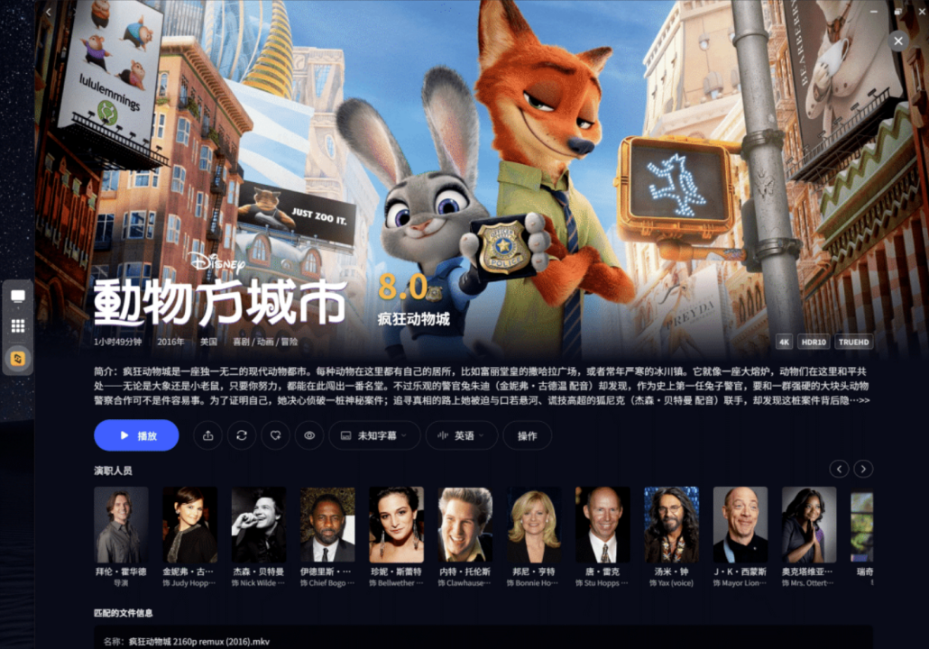 此外,极影视的影片详情页采用大幅背景海报设计,配合详尽的影片资料、演员信息,视觉体验比肩主流视频平台,同时支持收藏、标记观看进度、内容分享等实用功能,让家庭观影操作更顺滑、更专业,操作简单易懂,老人与孩子都能轻松使用,真正实现家庭影音体验全年龄段适配。