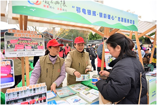 当日上午,“鄂电银辉”志愿团队还参与了宜昌市“国际志愿者日”暨“三峡蚁工”生态环保志愿者协会成立十周年志愿服务市集活动。“鄂电银辉”宜昌志愿服务团队自成立以来,始终扎根基层、心系民生,把履行社会责任作为初心使命,深度融入社区治理,用专业力量为群众办实事、解难题。